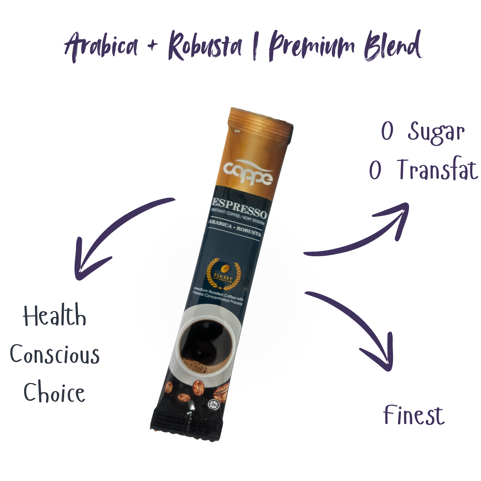 Enjoy café-style espresso at home or at work with CAPPE ESPRESSO – a premium instant coffee made from Arabica & Robusta beans using a unique freeze concentrate cold brew process. Fine powder, bold taste. Just pour, stir & enjoy!